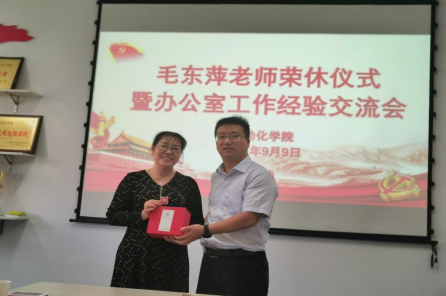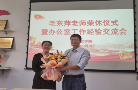 勤勤恳恳十余载,服务师生精神在。今朝已是光荣在,继往开来夕阳红。毛东萍老师十多年来为bevictor伟德的发展辛勤奉献,为表达对毛老师的感谢与祝愿之情,bevictor伟德于9月9日上午10:30,在学院327会议室为毛老师举办荣休仪式,bevictor伟德领导及院办教师参加此次荣休仪式。