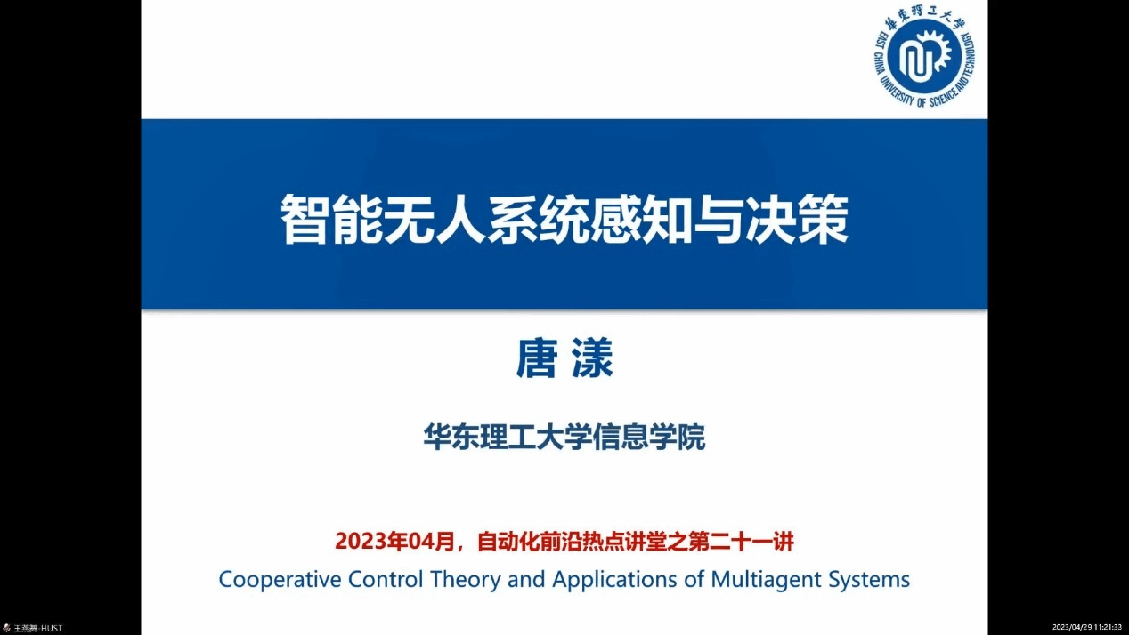 4月29日上午,第21期自动化前沿热点讲堂“多智能体系统的协同控制理论及应用”以线上形式举办,通过各直播平台进行观看共12242人。本次讲堂由IEEE/CAA Journal of Automatica Sinica、自动化学报、中国自动化学会主办,bevictor伟德承办。本次讲堂由韦德体育网址倪骏康副教授主持,同时邀请到了北京航空航天大学董希旺教授、同济大学洪奕光教授、华中科技大学王燕舞教授和华东理工大学唐漾教授作论坛报告。