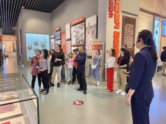 9月21日上午,研修班来到新四军军部旧址暨华东野战军纪念馆教学点,新四军军部旧址暨华东野战军纪念馆坐落于临沂市河东区九曲街道前河湾村,是新四军最后一个军部驻地,也是华东军区、华东野战军诞生地。1946年6月至1947年2月,陈毅、粟裕、张云逸等老一辈无产阶级革命家在此指挥了宿北战役、鲁南战役等重大军事行动,并完成了华东军区及华东野战军的组建。纪念馆通过修复陈毅办公室、军部办公室等历史场景,展出130余幅历史图片和80余件革命文物,结合声、光、电等现代技术,生动再现了军民浴血奋战的艰苦历程,引导大家从革命历史中汲取理想信念的力量。