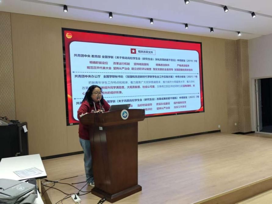 会议伊始,马雨竺带领大家学习了《关于加强新时代新征程学联学生会工作的实施意见》。她结合文件讲到学生工作者应坚持以习近平新时代中国特色社会主义思想为指导,贯彻落实习近平总书记关于青年工作的重要思想,坚持党的领导,聚焦政治引领,当好桥梁纽带,服务中心大局,加强自身建设。