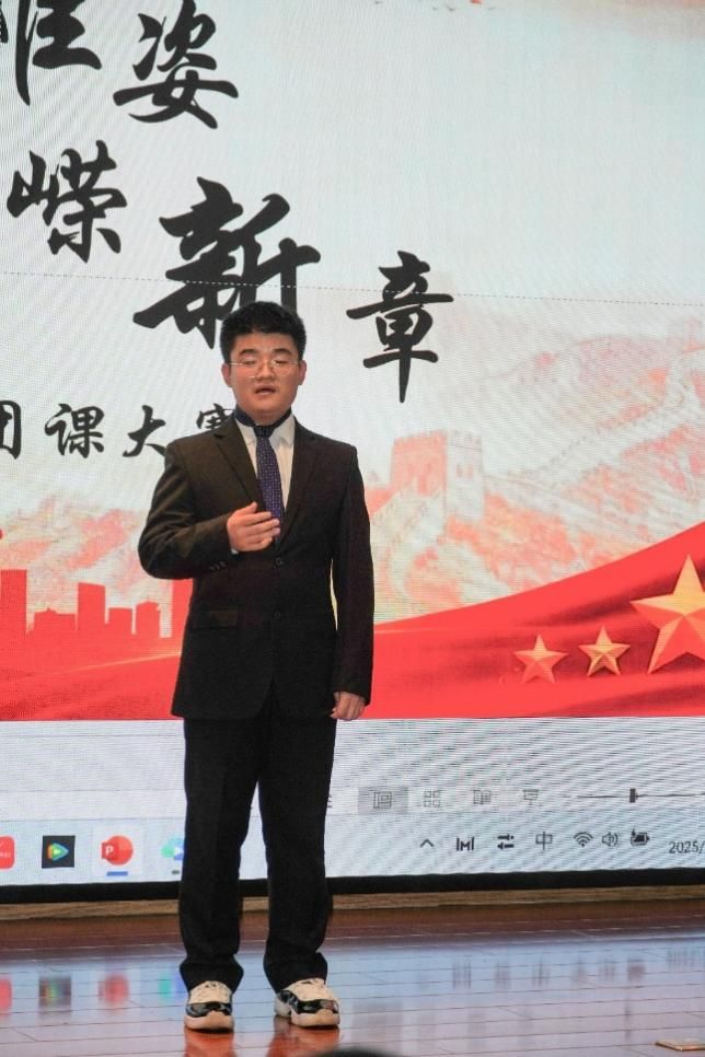 第二位是张孜睿同学。戴望舒笔下的家国情怀跨越时空,随张孜睿同学的声音直抵听众心底。“残缺的手掌”,在朗诵者的诠释中被赋予了鲜活的生命力——它既是身体的创伤,更是民族的坚韧,每一次“抚摸”都是对祖国最深沉的告白。
