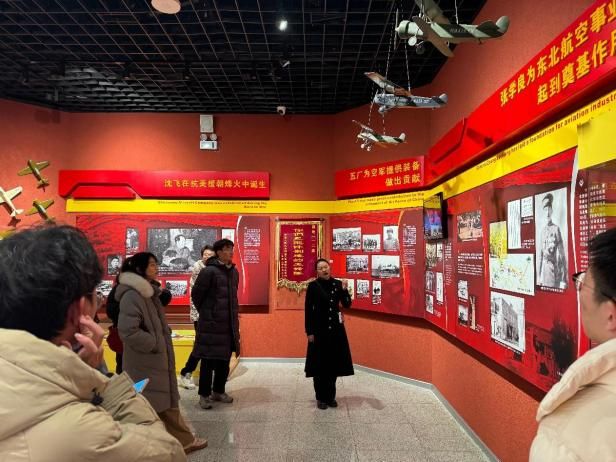 接着,实践队赴沈阳飞机工业(集团)有限公司参观学习。作为我国歼击机核心研制生产基地,沈飞集科研、生产、试验、试飞于一体,展现了我国航空工业的高水平成就。在沈飞航空博览园,从早期仿制机型到最新一代歼击机,一架架功勋战机见证了我国航空事业的辉煌发展。通过现场讲解,队员们对“忠诚奉献、逐梦蓝天”的航空报国精神有了更直观的认识。