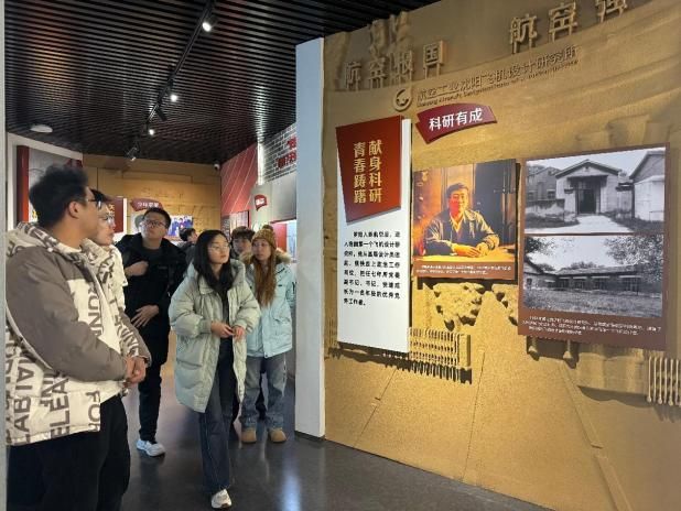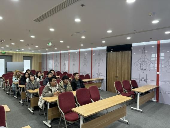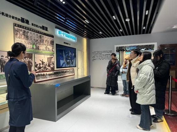 实践队首先走进中航工业沈阳飞机设计研究所(601所)。该所成立于1961年,是新中国创建最早的飞机设计研究所,长期致力于战斗机总体设计与研发工作。在沈阳航空科技馆,队员们通过实物模型、图文展板和动态演示,系统了解了我国航空装备从无到有、从弱到强的艰辛发展历程。尤其是沈飞人突破技术封锁、实现多项关键技术自主可控的奋斗故事,让队员们深切体会到科技报国在当今时代的重大价值。在随后的座谈会上,工作人员先后介绍了601所的发展及招聘流程、工作待遇以及职业晋升途径。同学们结合专业背景与与会人员进行了交流。