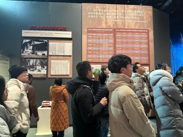 展览通过文物、影像和现代化展示技术,真实而生动地再现了东北军民在中国共产党领导下浴血奋战的壮阔历程。从杨靖宇将军在冰天雪地中孤身与日寇周旋的英勇无畏,到东北抗联“火烤胸前暖,风吹背后寒”的密营岁月,一段段艰苦卓绝的抗战历史,让队员们不禁热泪盈眶。
