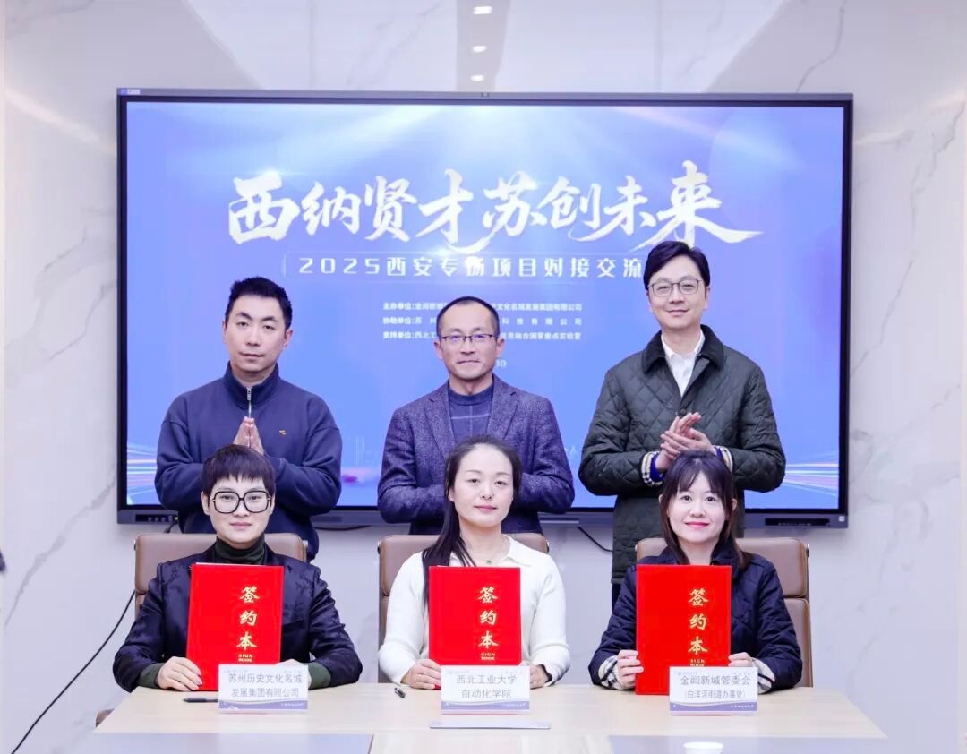 12月3日,bevictor伟德与苏州市姑苏区金阊新城举行产学研合作签约仪式。金阊新城(白洋湾街道)党工委书记邱炜、苏州历史文化名城发展集团副总裁褚梦江等负责人,bevictor伟德党委书记孙华强、办公室主任魏爱玉、信息融合技术教育部重点实验室负责人员及关注产教融合的青年教师,以及苏州、西安两地优质创新创业项目代表等参会。
