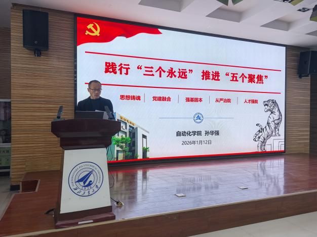孙华强向与会人员简要说明了本次大会的流程。随后,院长李伟林向与会人员作2025年度学院工作总结汇报暨个人述职报告,全面汇报了学院整体工作推进情况以及年度财务收支情况。孙华强就2025年度学院党委工作进行总结汇报,系统梳理了学院党建工作推进落实情况,并同步开展个人述职。其他院领导许斌、王小旭、易正阳结合各自分管工作,分别从深入学习贯彻习近平新时代中国特色社会主义思想和党的二十届四中全会精神,扎实推进“双一流”建设,落实“一十百千”近中期发展目标、履行岗位职责、作风建设情况等依次述职汇报。述职结束后,参会人员对学院领导班子成员测评打分。
